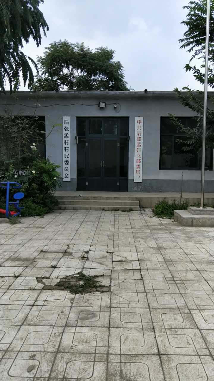 后张孟村,总人数1401人,村民小组4个,耕地1430亩,人均纯收入1120元,主导产业建筑业。村内无集体收入。村党组织书记王国敏,年龄44岁,高中学历,任现职时间2006年2月。村“两委”班子人员总数4名。其中党支部委员人数3名,村委委员人数3名,交叉任职人数2名,村党支部委员张彦国、韩彦敏、朱宁洲,村委会主任张彦国、委员朱宁洲、王国敏。